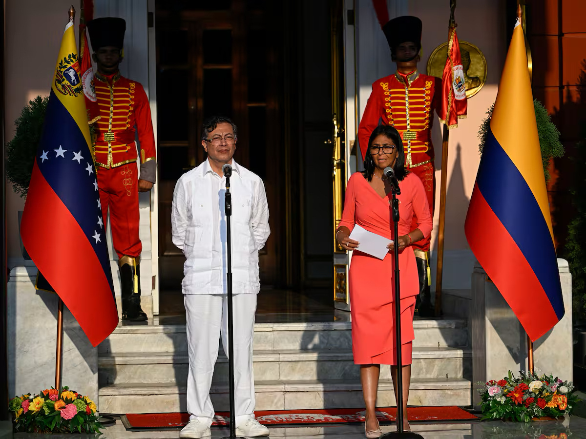 △哥伦比亚总统佩特罗(左)与委内瑞拉代总统德尔西·罗德里格斯(右)