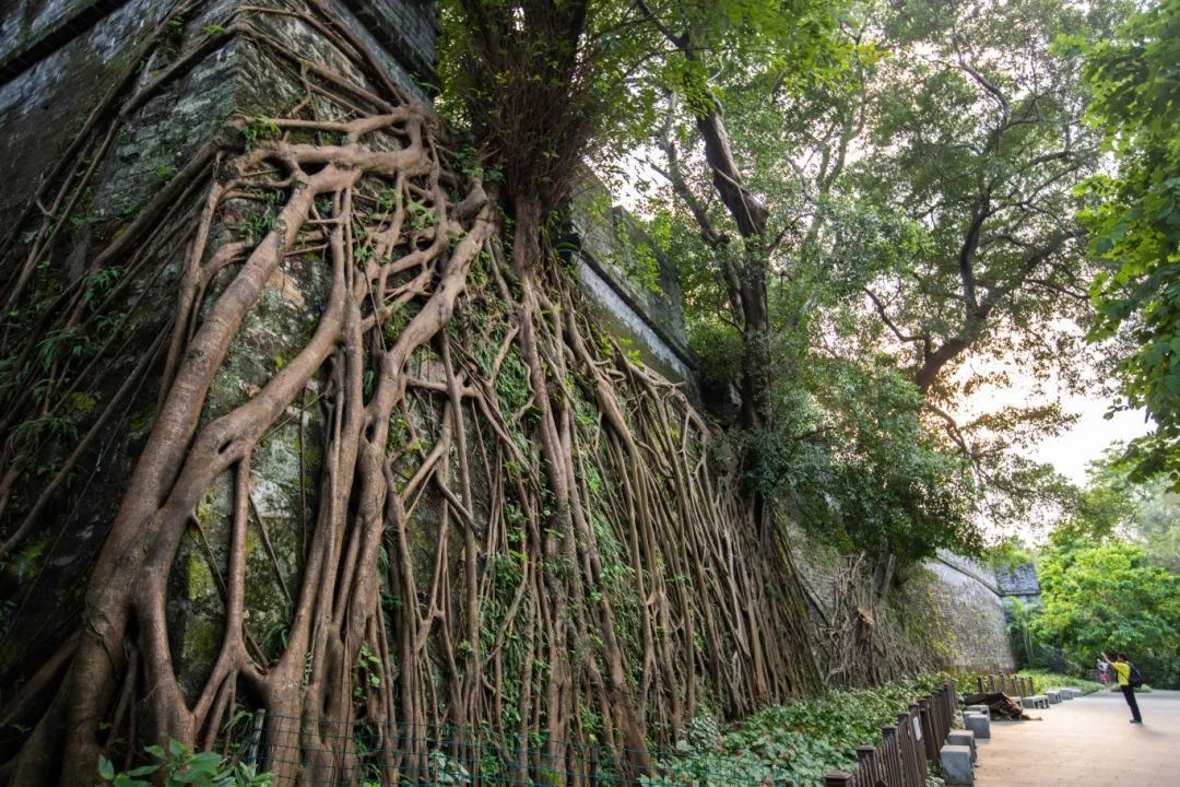 步出越秀公园向南不远,即为中山纪念堂。园内有逾350年树龄的“木棉王”,以及白兰、黄葛树、南岭黄檀等11株古树名木。经过近百年的精心养护,中山纪念堂于2023年入选首批“广州市古树公园”名单,成为广州城市近代中轴线上首个获此称号的古树公园。