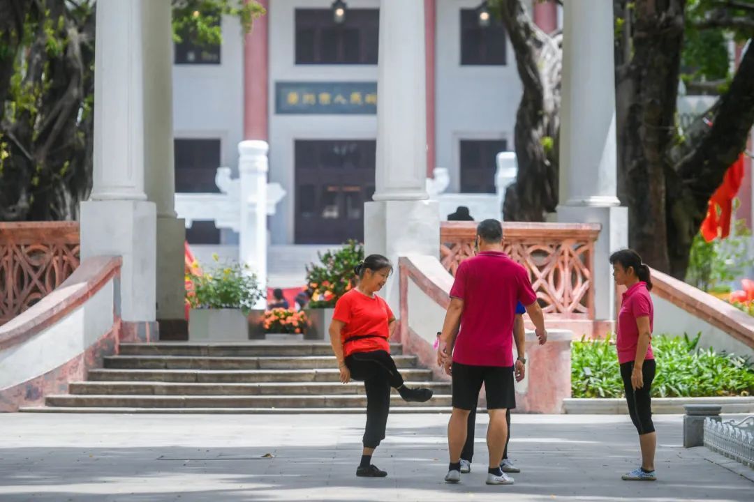 对于越秀区的居民而言,海珠广场不仅是公共空间,更是他们心中的“客厅”。夏天傍晚,在广场草坪,一家人坐着凉席聊天纳凉,北侧陈列馆顶楼的“小太阳”像客厅里的吊灯,把草坪照亮。许多家庭的相册中,都珍藏着以广州解放纪念像为背景的全家福,这些照片不仅是家庭记忆的载体,更是世代相传的精神财富。